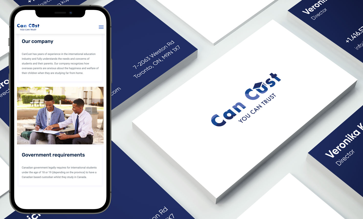 Design, branding and a responsive website for CanCust – a custodianship service for international students in Canada. The project features a landing page, a blog, an interactive application form. Once application is submitted, one of the managers at CanCust gets an email notification and enrolls a new customer into CRM system.